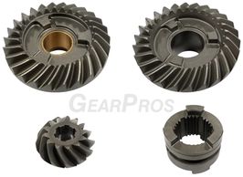 4 piece replacement lower unit gear set. Pinion, Forward, and Reverse Gear, includes Clutch Dog / Shifter.